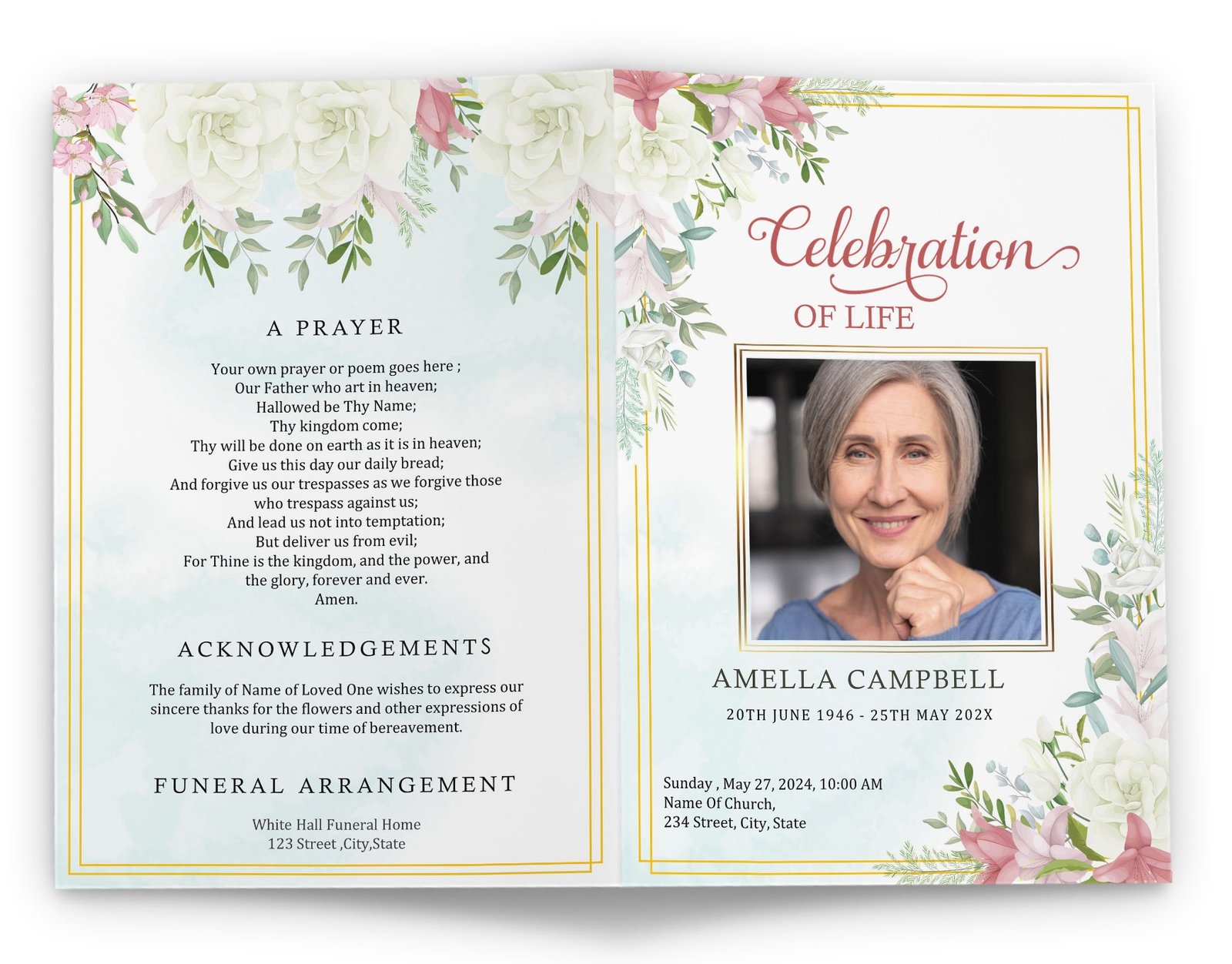 Editable Funeral Program Templates Print Memorial Pamphlets