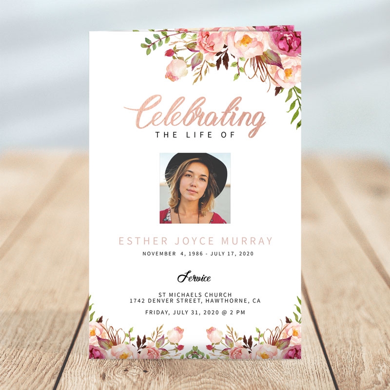 Gentle Florals Life Celebration Funeral Program Template