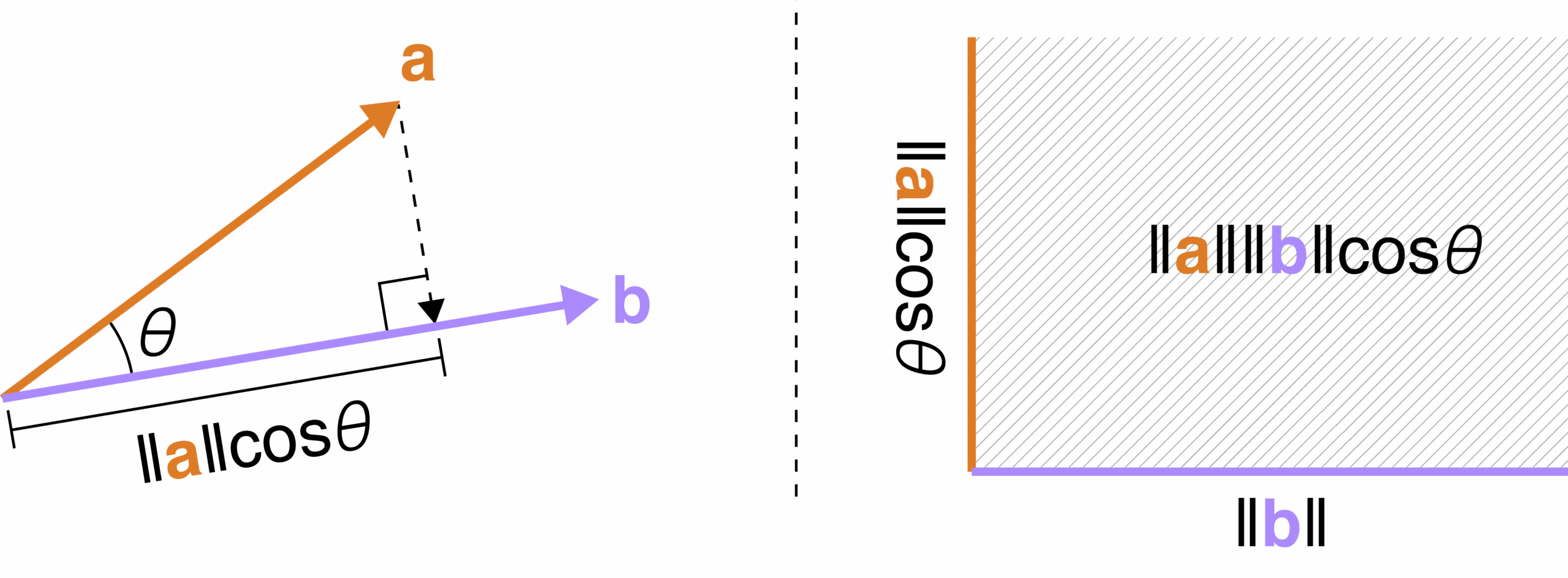 Where |a| and |b| are the magnitudes of vectors a and b, respectively. This formula can be used to determine if two vectors are parallel (cos(θ) = 1), perpendicular (cos(θ) = 0), or at some other angle.