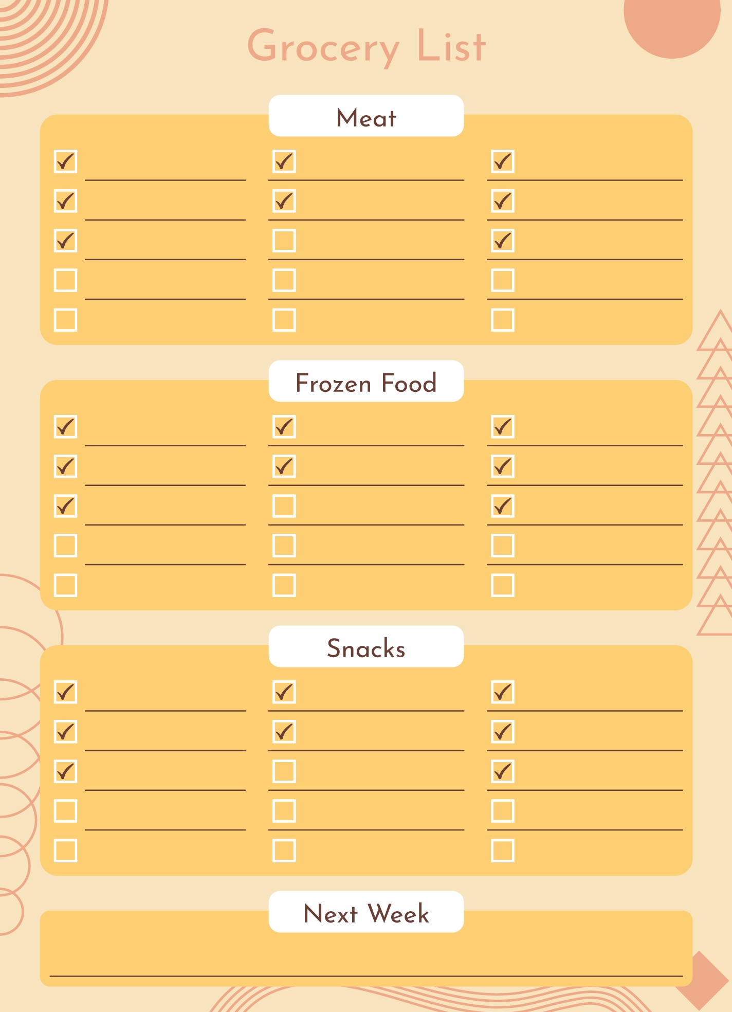 Grocery List Templates