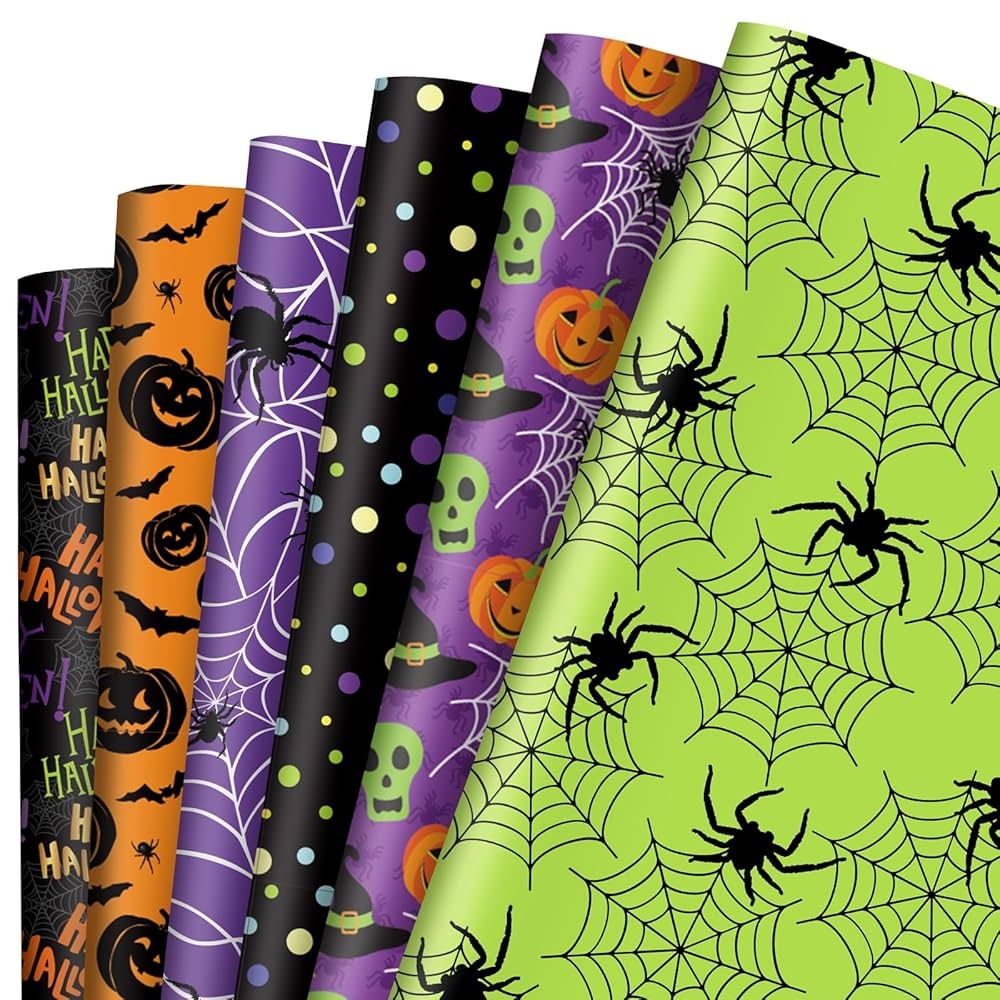 One popular option for Halloween wrapping paper is to choose a design that features traditional Halloween symbols like bats, spiders, and skeletons. These classic patterns are perfect for creating a creepy and fun look for your presents. You can also opt for more modern designs that incorporate trendy elements like metallic accents or bold graphic prints.
