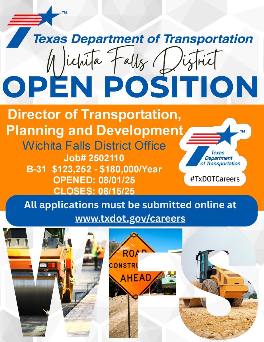 Whether you are interested in engineering, project management, maintenance, administration, or public relations, TxDOT has a job for you. With opportunities for advancement and competitive benefits, TxDOT is a great place to build a long and successful career in transportation.